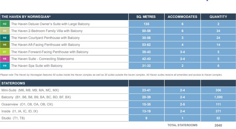 | Kategória | Počet kajút | Veľkosť |